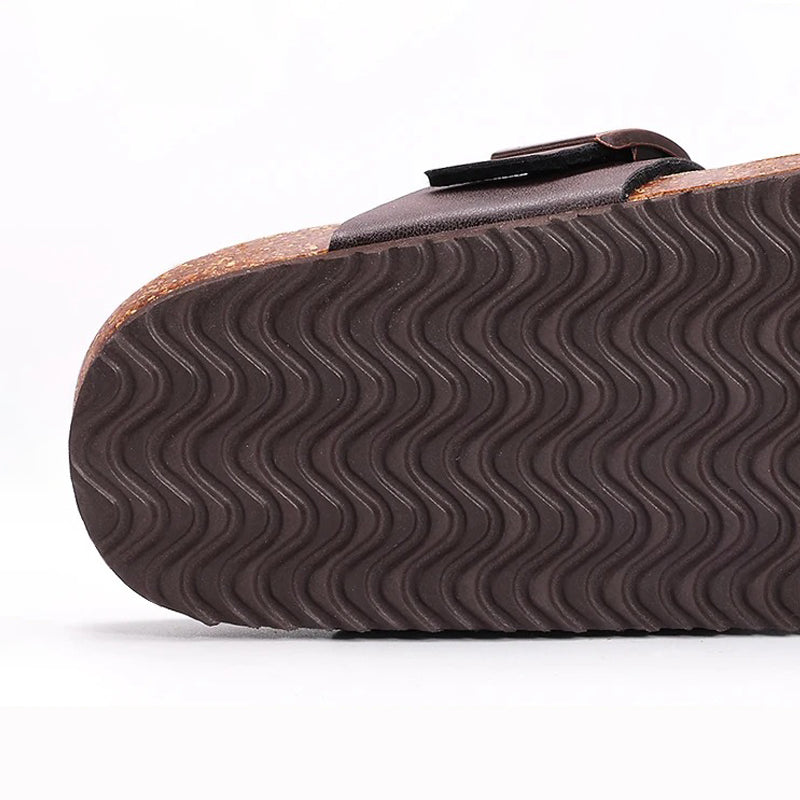 Le liège naturel absorbe les chocs, tandis que la boucle réglable permet d’ajuster la chaussure à votre morphologie. Son design décontracté, associé à des matériaux respirants et antidérapants, en fait une alliée idéale pour l'été ou la maison.